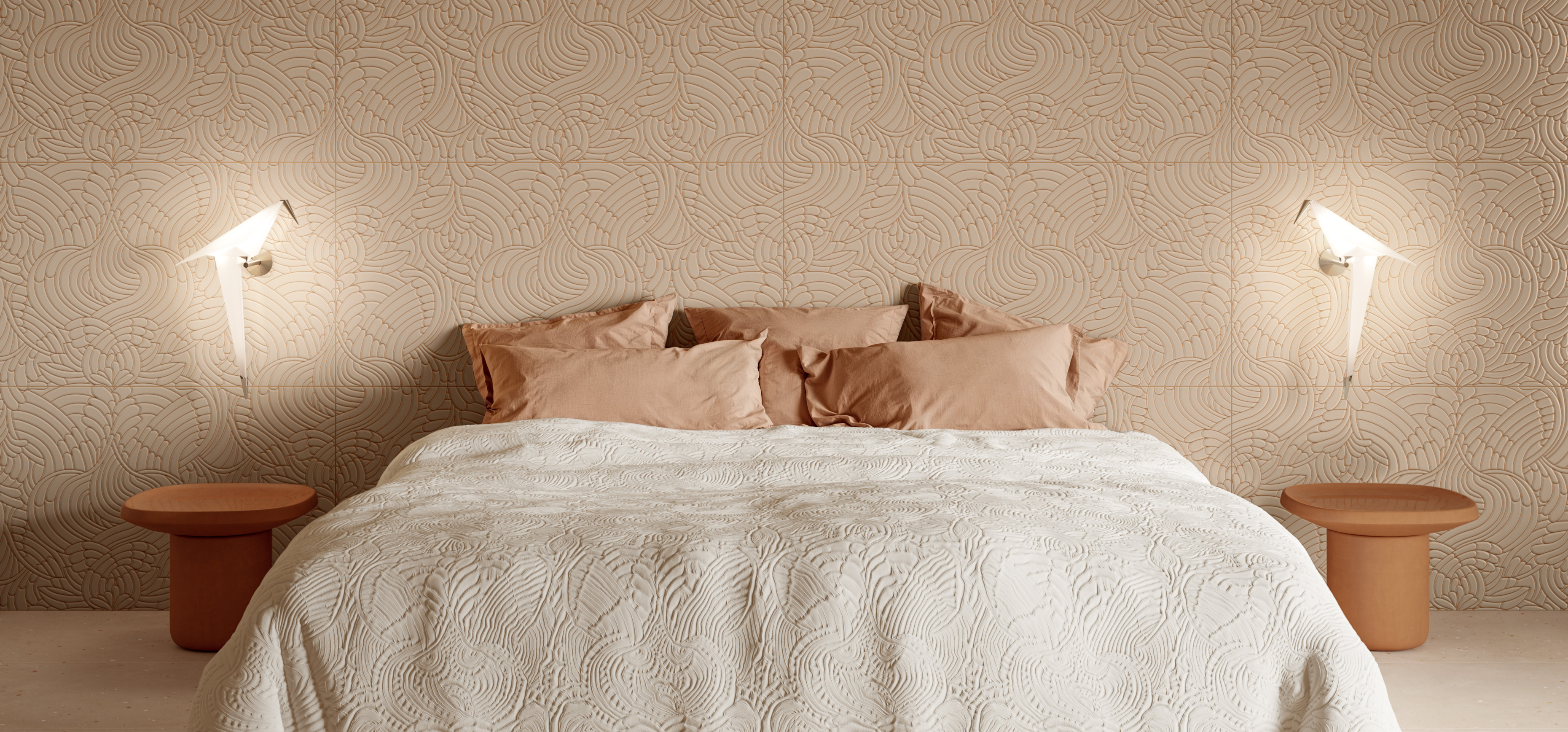 このコレクションは慌ただしい日常に安らぎをもたらす「静寂の聖域」がコンセプト。シリーズ名「ネスティング」は「巣づくり」を意味し、柔らかな心地よさを表現。フクロウ、レア、鳩という3 種の動物から得た着想を、繊細なテクスチュアへ昇華させました。自然の造形美やサイクルと共鳴するパターンは、絶滅した動物たちの記憶を呼び覚まし、大地に根ざした深い落ち着きへと導きます。